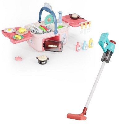 Contixo Kids Kitchen & Vacuum Cleaner Toy Bundle - Interactive Cooking & 3-in-1 Cleaning Pretend Play Set with Lights & Sounds Toys for Ages 3+