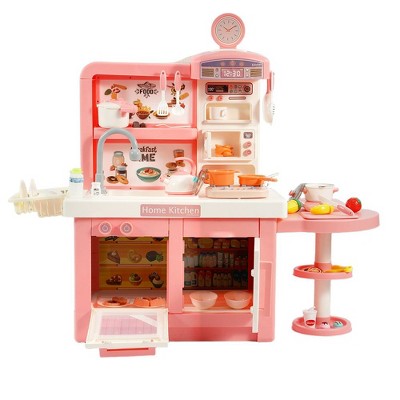 MOVSSOU Kids Kitchen Play Set of 49 Pcs Pretend Play Kitchen Toy Set Lights Sounds Pink