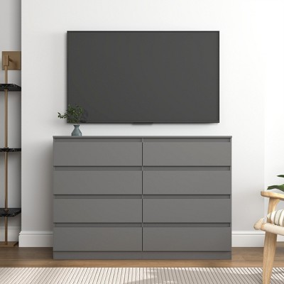 Hardware and accents on the dressers can add a finishing touch to its overall look. Dressers can come with a variety of hardware options, including knobs, handles, and pulls. Consider the style of hardware that would work best with your bedroom dressers and décor. Some dressers also have decorative accents, such as carved details or mirror insets that can add visual interest to the piece. You can also get creative by paring dressers with a chest or a cupboard and enjoy extra storage in less space. Dressers can be multifunctional, for example you can rest your television at a comfortable viewing height or place a mirror on the top and keep your makeup or jewelry in the drawers. Spacious dressers can help you store clothes, toys or seasonal items and other essentials. Choose dressers that would suit the overall look and feel of your room and a material and finish that fits your style.