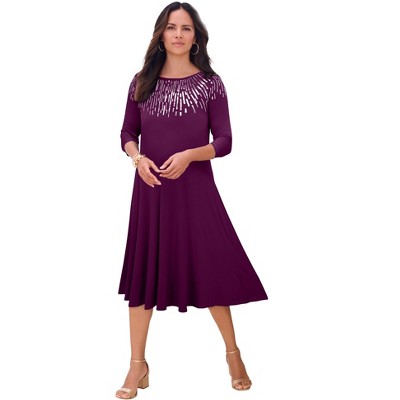 Roaman's Plus Size 3/4 Sleeve Embellished Boatneck Dress