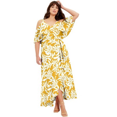June + Vie by Roaman's Cold-Shoulder Faux-Wrap Maxi Dress