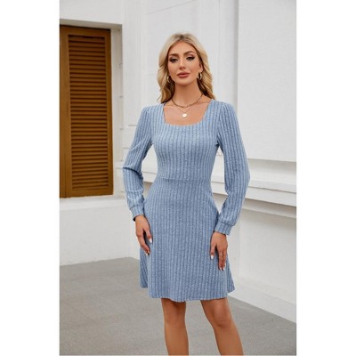 Women'S Square Neck Babydoll Mesh Long Sleeve Dress