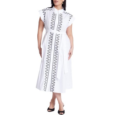 Plus Size Short Sleeve Plaid Button Down Shirt Dress -White Mark