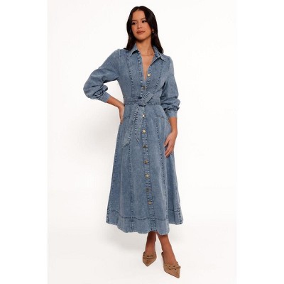 INSPIRE CHIC Women's 3/4 Sleeve Button Down Denim Shirt Dress