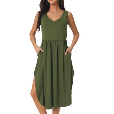INSPIRE CHIC Women's V Neck Wear to Work Sleeveless Flare Knee Length Dresses