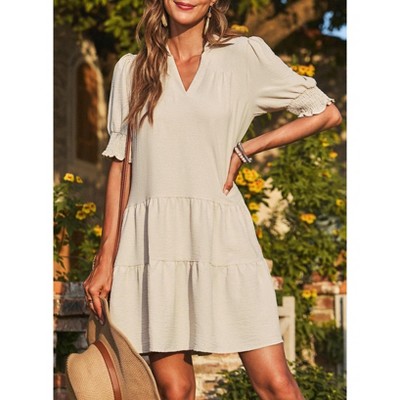 Mini Dresses: Mini dresses are shorter, typically ending mid-thigh. They’re perfect for a fun night out or casual summer wear.
