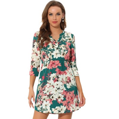 Allegra K Women's Mock Neck Swing Midi Long Sleeve A-line Floral Dress