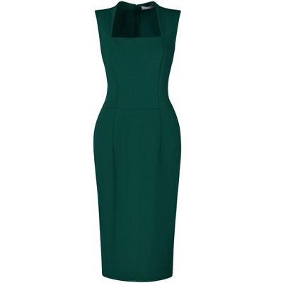 Hobemty Women's Sleeveless Square Neck Elegant Work Sheath Dress