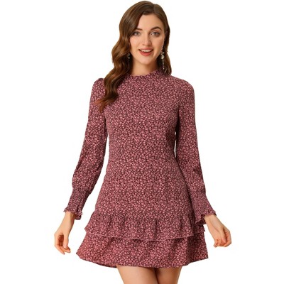 Allegra K Women's Boho Floral V Neck Tie Waist Long Sleeve Chiffon Wrap Midi Dress