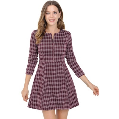 Allegra K Women's Plaid Peter Pan Collar Long Sleeve Mini A-Line Dress