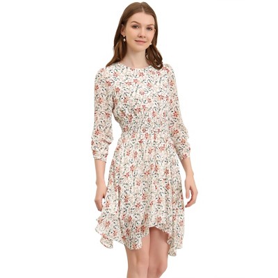 Allegra K Women's Floral Ruffle Neck Smocked Waist Short Sleeve Sundress