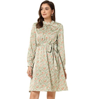 Allegra K Women's Mock Neck Swing Midi Long Sleeve A-line Floral Dress