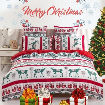 FIONECA Christmas Duvet Cover Set Snowflake Reindeer Printed