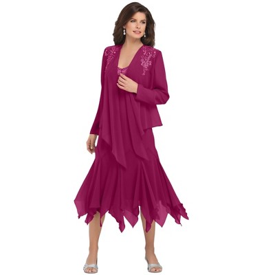 Catherines 2-Piece Sequin & Charmeuse Jacket Dress Set