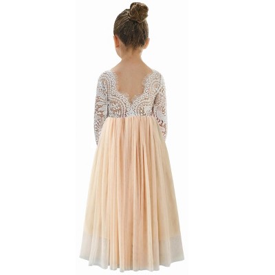 2Bunnies Girls 12M-12yr Rose Lace Tulle Sleeve Flower Girl Dress Knee