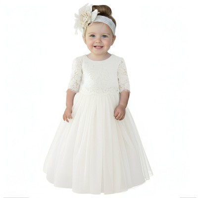 2Bunnies Lace Pom Pom Trim Baby Girl Dress