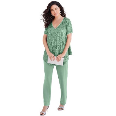 Roaman's Plus-Size 2 Piece S/S Sequin Top And Pant Set