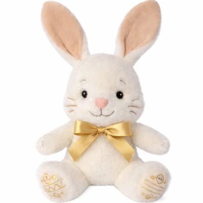 Easter Plush Bunny & Bunny Egg Basket Toy Set, Soft Cuddly Stuffed Bunny with Bow and Easter Egg Basket Plush Toys for Kids, Easter Party Favors