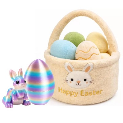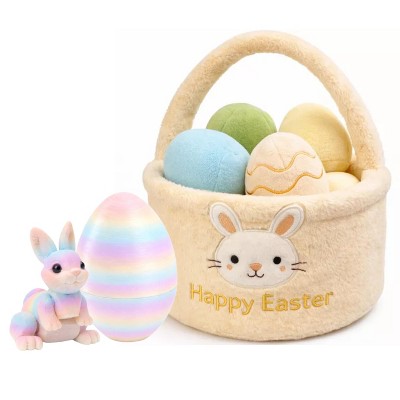 Easter Egg Plush Basket Toy Set, 9.5" Easter Egg Hunt Basket with Bunny Design, Soft Decorative Easter Plush Toys, Perfect Easter Gift Set for Babies