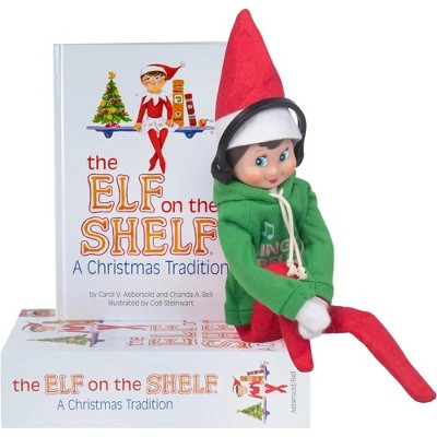Elf On The Shelf Boy with Jingle Jam Hoodie Set - Blue Eyed Boy Elf Doll with Book and Hoodie with DJ Headphones - Elf Figure Clothing Pack