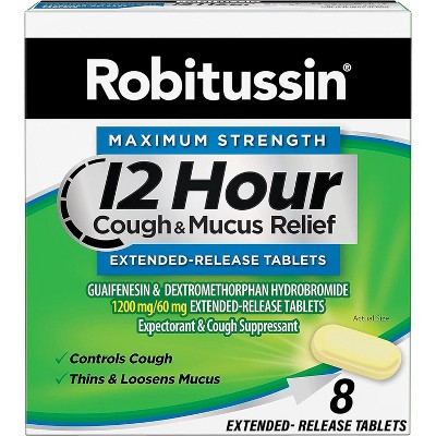 Robitussin Maximum Strength 12 Hour Cough & Mucus Relief Extended-Release Tablets, 8 Count