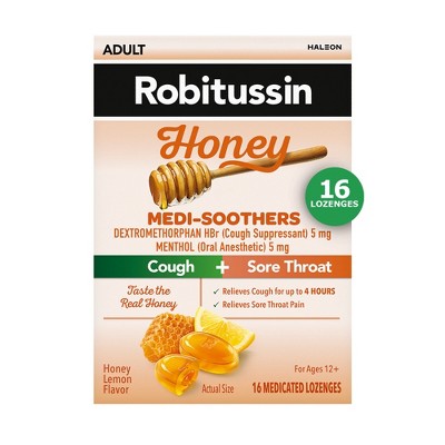 Robitussin Medi-Soothers Honey Lemon Lozenges, Soothing Menthol Throat & Cough Relief Drops, 16 Count