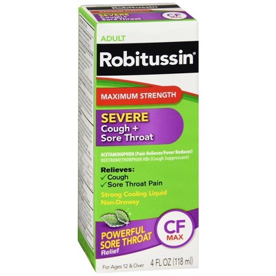 Robitussin Adult Severe Cough & Sore Throat Liquid, Multi-Symptom Relief for Cough, Throat Pain & Congestion, 4 oz