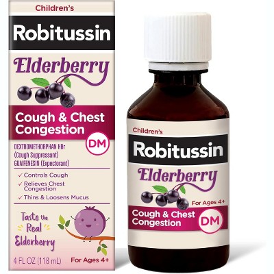 Robitussin Children’s Cough, Chest & Congestion DM Elderberry, Cough Suppressant & Expectorant Relief, 4 oz