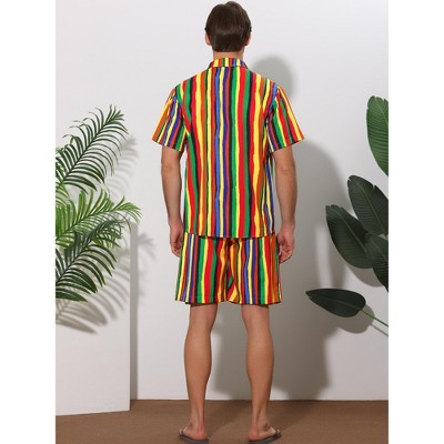 Lars Amadeus Men's Vacation Beach Rainbow Shirt and Shorts Set 2 Pieces
