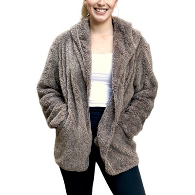 Anna-Kaci Women's Fluffy Fleece Teddy Faux Fur Coat Jacket with Hoodie for Everyday Wear