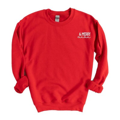 Simply Sage Market Women's Graphic Sweatshirt Embroidered Merry -Red Ink