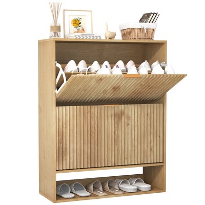 31.5 Inch Wide Shoe Cabinet with 2 Flip-Top Drawers, Grooved Storage Compartments, Modern Entryway Organizer & Hallway Storage Furniture
