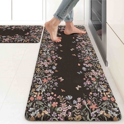 BAGOKIE Farmhouse Floral Anti Fatigue Kitchen Mat Set of 2