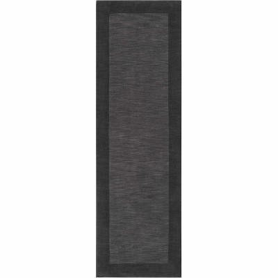 Hauteloom Bordered Solid Black Charcoal Wool Rug