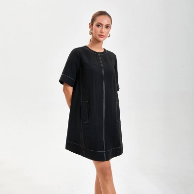 Women's Short Sleeve Swing Mini A-Line Dress - A New Day™ Black