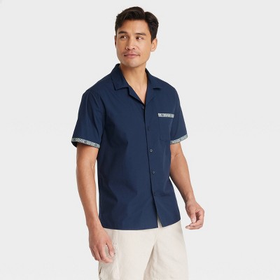 Men's Short Sleeve Trim Button-Down Shirt - Goodfellow & Co™ Navy Blue