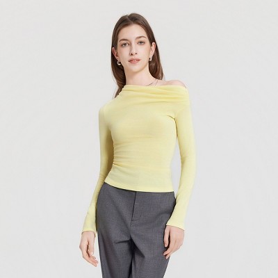 Women's Long Sleeve Asymmetrical Draped Top - A New Day™ Light Yellow
