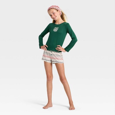 Girls' 2pc Long Sleeve Pajama Set with Spa Headband - art class™ Green