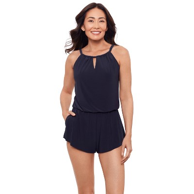 Aqua Green, Women's Keyhole Blouson Romper