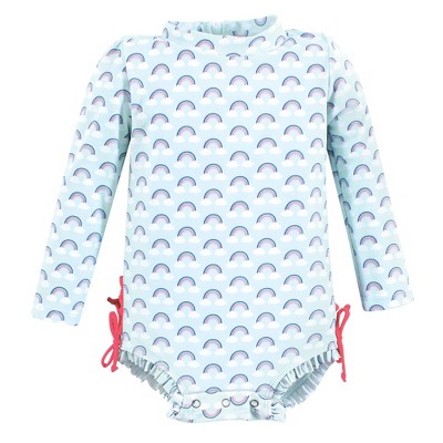 Hudson Baby Infant Girl Swim Rashguard Set, Blue Floral