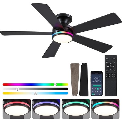 46 Inch Low Profile Ceiling Fan with 5 Blades 3 Color Temperature LED for Bedroom Living Room