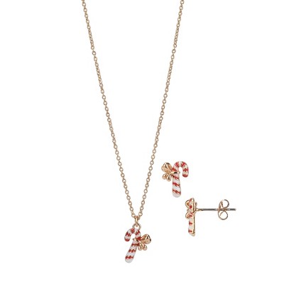 FAO Schwarz Candy Cane Necklace and Earring Set