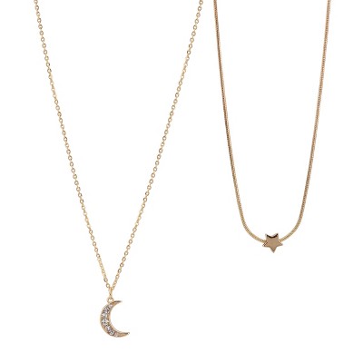 FAO Schwarz Gold Tone Star and Moon Duo Necklace Set