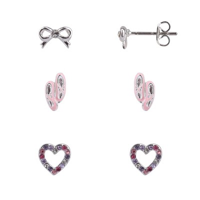 FAO Schwarz Silver Tone Ballet Slipper Trio Earring Set