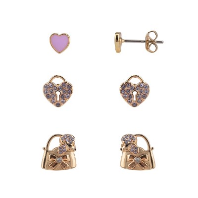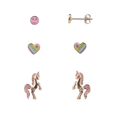 FAO Schwarz Gold Tone Unicorn and Heart Trio Earring Set