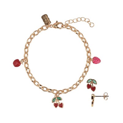 FAO Schwarz Gold Tone Cherry Bracelet and Earring Set