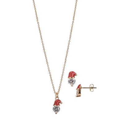 FAO Schwarz Santa Hat Necklace and Earring Set