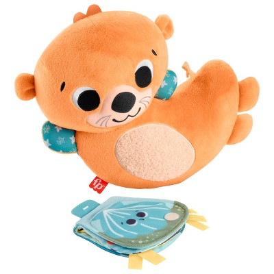FISHER-PRICE BABY Toy 2-in-1 Rockin' Tummy Time Otter Plush Sensory Activity with Soft Book for Newborn Play Ages 0+ Months