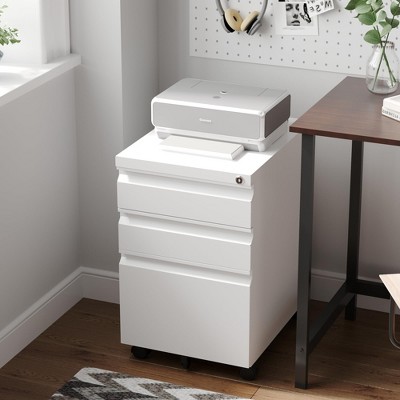A file cabinet is an office staple and helps keep items organized and safe. Cabinet drawers, make it easy to sort, store and categorize documents. Filing cabinets are not just great for offices. You will find them useful to organize and de-clutter your home, garage, etc. You can make use of their storage benefits even in your home office or your study. At Target, find a wide range of filing cabinets, from lateral to vertical, mobile filing cabinets and more. This collection has an option for whatever your space calls for. For small office spaces, pick a vertical file cabinet and to utilize under-the-desk space go for a lateral file cabinet. A vertical file cabinet helps you maximize a corner space. If the primary material of the cabinet is a priority, choose from solid wood or metal types. Select file cabinets with varying storage like a single drawer or ones with two or three drawers. Keep important documents safe with filing cabinets with added-security features like lockable and fireproof drawers. Whatever your storage needs, at Target we make it easy to find the right file cabinet for you.