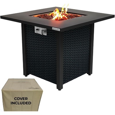 Fire pits mostly come with two types of fuel for ignition - wood burning or gas. Wooden pits generally more affordable and easy to install. They give your space a natural and rustic feel. And are a great way to cook food on skewers, or barbecues in your backyard. Gas fire pits provide a consistent and adjustable flame that requires minimal maintenance. You can even buy fire pits that have auto ignition for added safety. Gas fire pits also offer higher BTUs so that you can regulate the flame more easily. Shop at Target to find the perfect outdoor living fire pit and fire pit accessories for your needs.